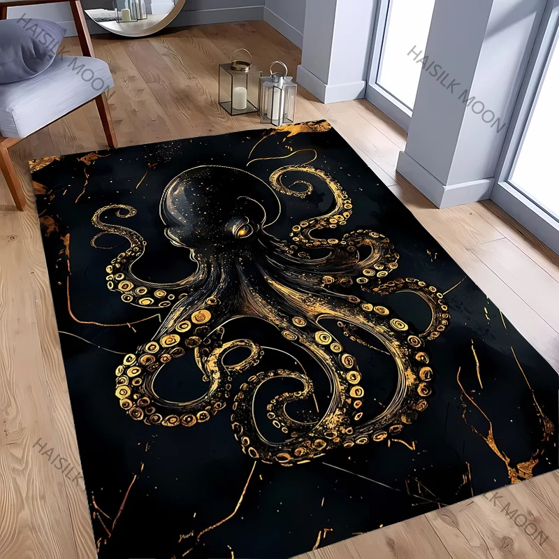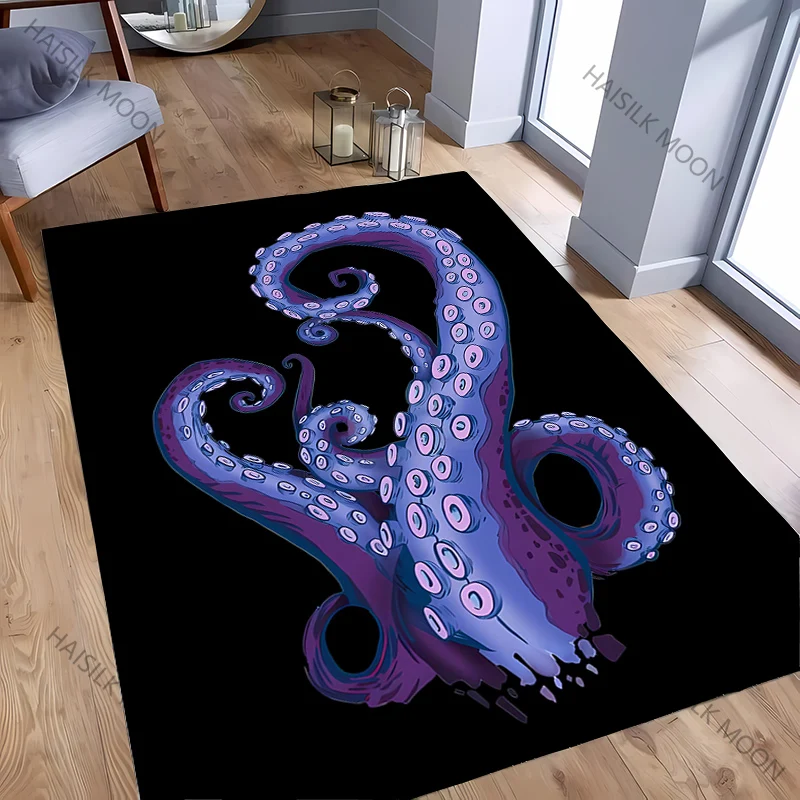 3D Octopus Print Non-Slip Rug Large Decorative Carpet for Game Room, Office, or Bedroom