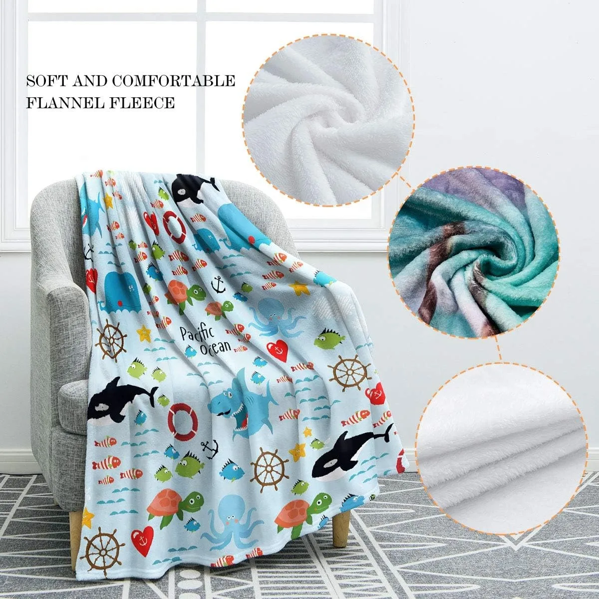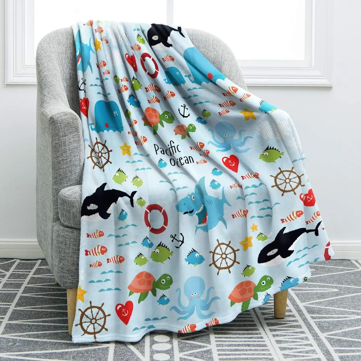 Boys Girls Cratoon Shark Turtle Octopus Throw Blanket
