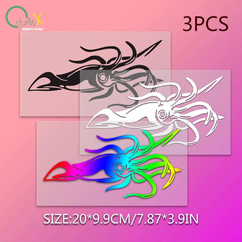 Reflective Octopus & Squid Waterproof Car Window Stickers Fishing Box Decals