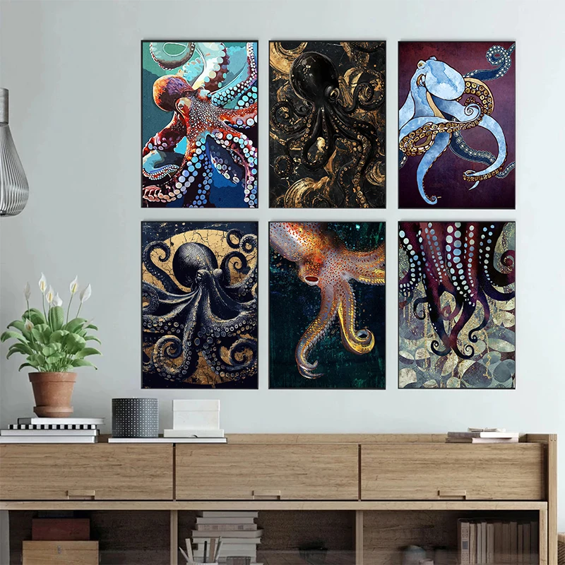 Retro Octopus Art Canvas Poster Trendy Wall Decor for Home & Villa